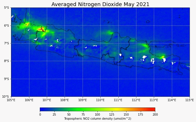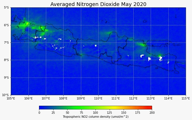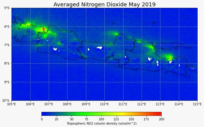 Sentinel-5P sebagai satelit terbaik yang dapat memantau konsentrasi nitrogen dioksida berskala global. Kali ini saya coba melakukan visualisasi data bulan Mei 2019, 2020, dan 2021 untuk melihat tren aktivitas manusia berdasarkan data nitrogen dioksida. Terlihat bahwa data nitrogen sudah kembali ke level sebelum pandemi. Aktivitas publik sepertinya sudah kembali ke normal.