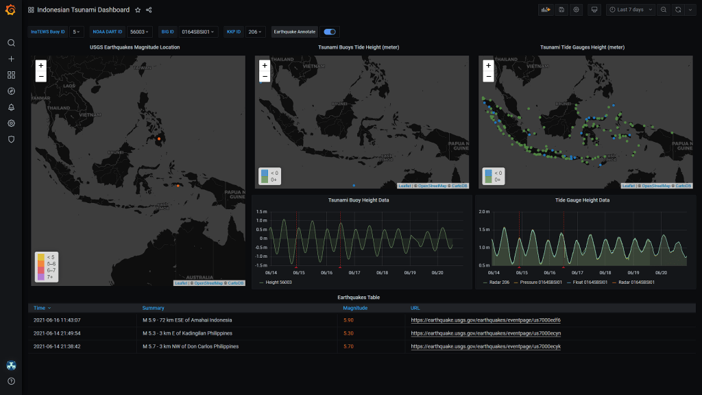 Saat mengembangkan RECTO Tsunami menggunakan Python, InfluxDB, dan Grafana, saya mengembangkan script sederhana untuk mengunduh data dari USGS. Program ini sekarang sudah saya simpan di PyPI dengan link: https://pypi.org/project/usgs-quake/. Melalui script ini, RECTO Tsunami dapat mengambil data termutakhir dari feed GeoJSON USGS dan menampilkannya ke sebuah dashboard Grafana. Instalasi modul ini dapat dilakukan dengan PIP: