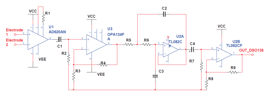 As a part of Biomedical Instrumentation course, we created an analog circuit to convert ECG signal from the electrode that can be shown in a DSO.